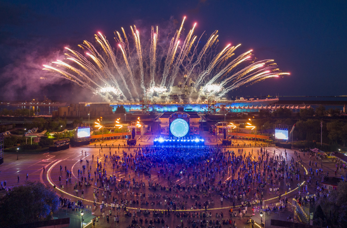 伴隨著文旅市場(chǎng)加速回暖,泰達(dá)航母充分發(fā)揮黨建引領(lǐng)作用,積極踐行新發(fā)展理念,搶抓文旅復(fù)蘇機(jī)遇期,以“紅色引擎”激活航母“夜經(jīng)濟(jì)”。在上級(jí)單位的大力支持下,航母緊跟暑期旅游熱,創(chuàng)新策劃打造“夜上津門(mén)˙焰遇航母”超大型沉浸式夏日焰火音樂(lè)節(jié),活動(dòng)一經(jīng)推出,便成為濱海新區(qū)乃至天津市備受關(guān)注的文旅活動(dòng)之一,為區(qū)域旅游注入了新活力。